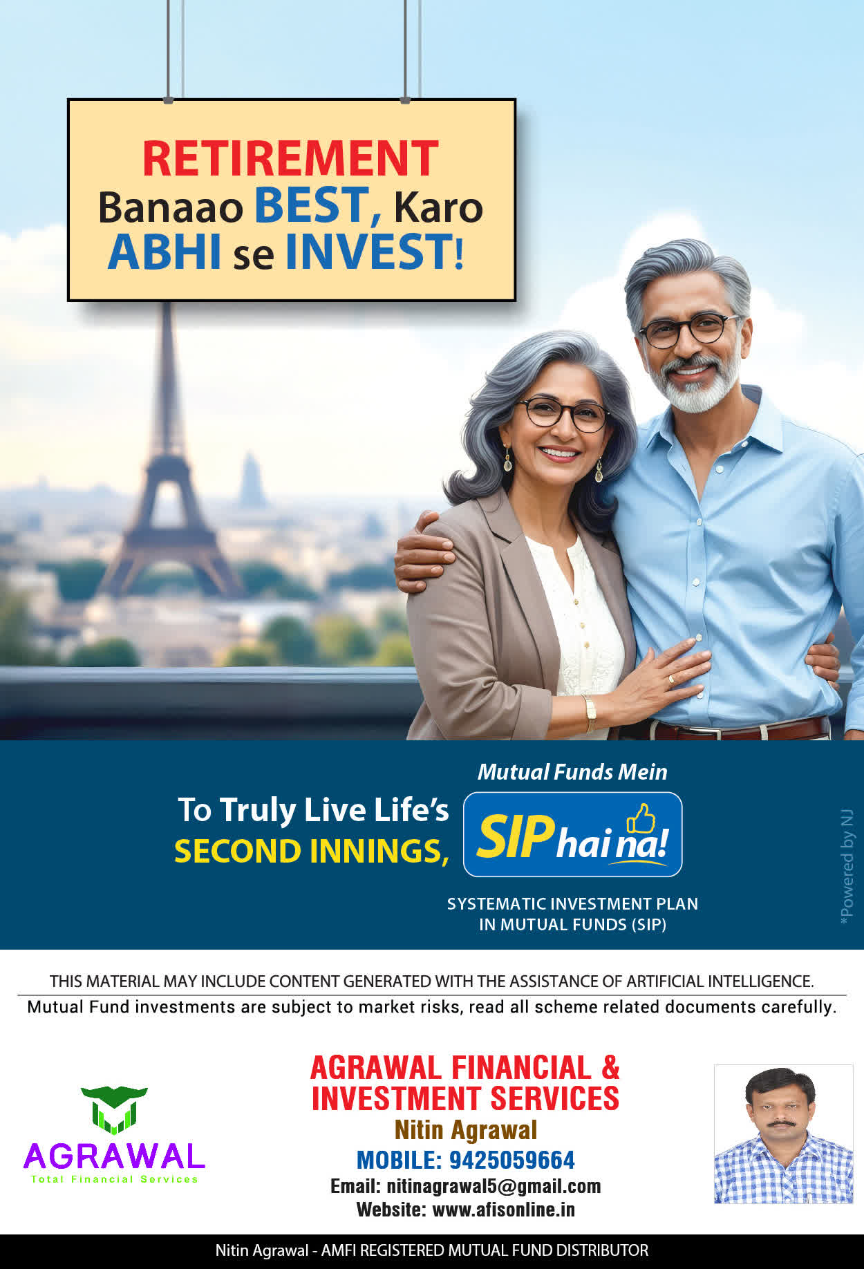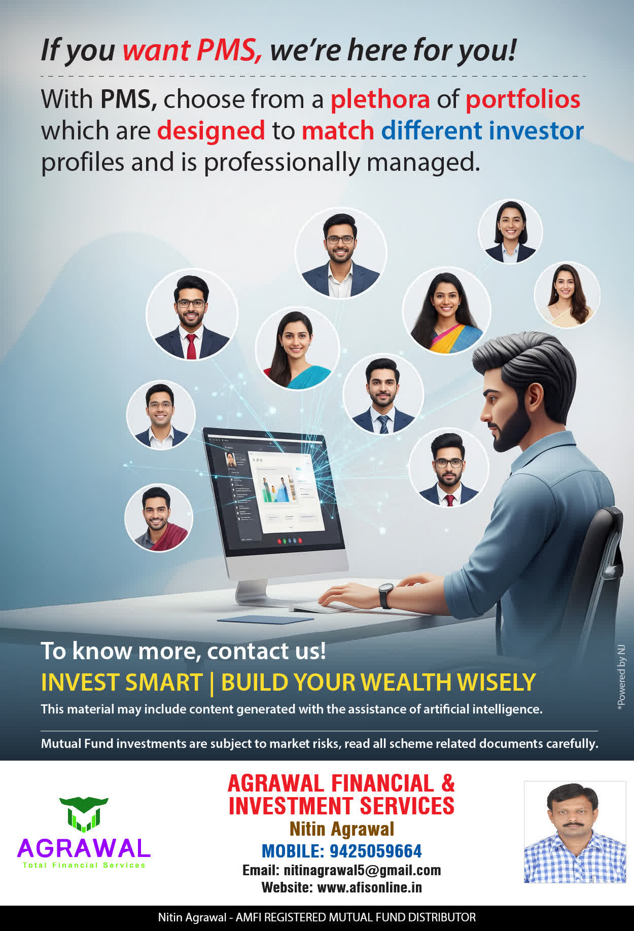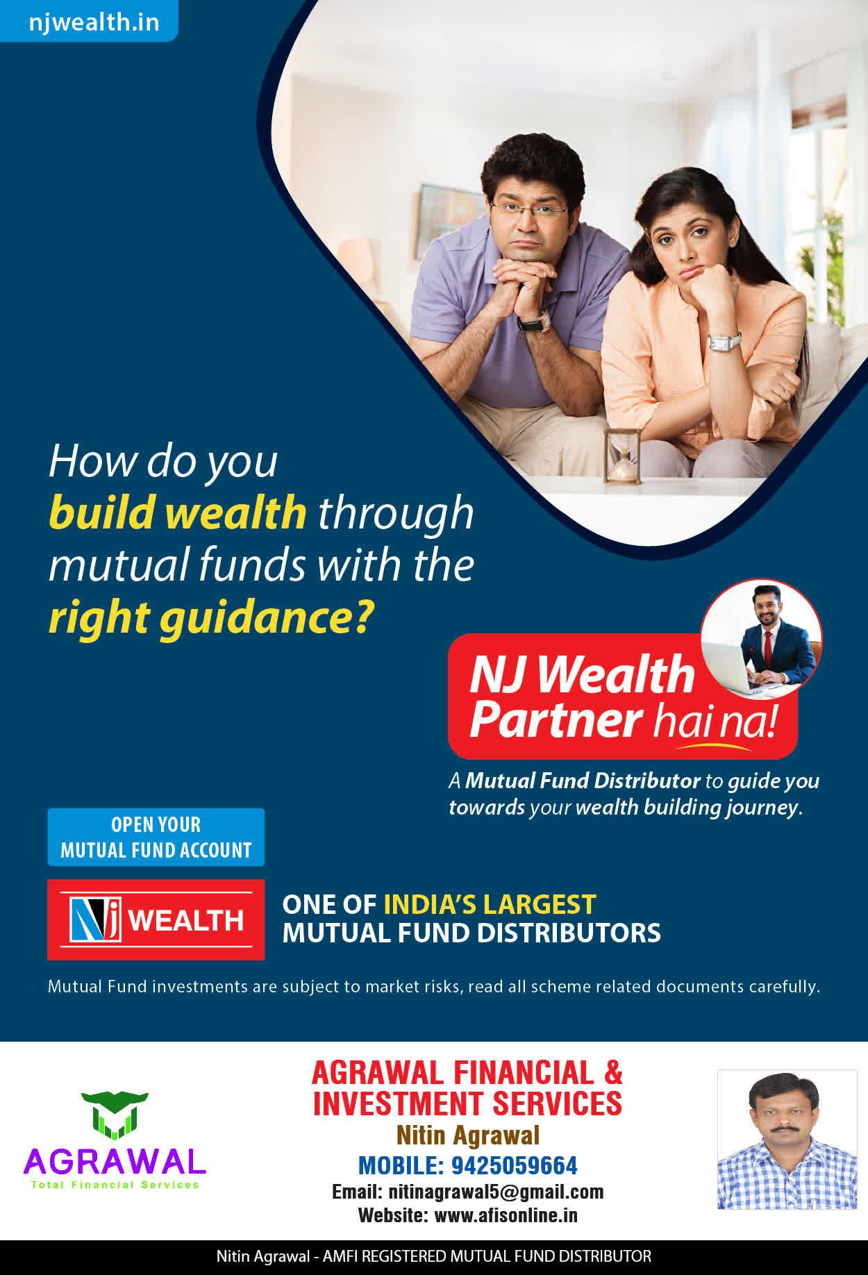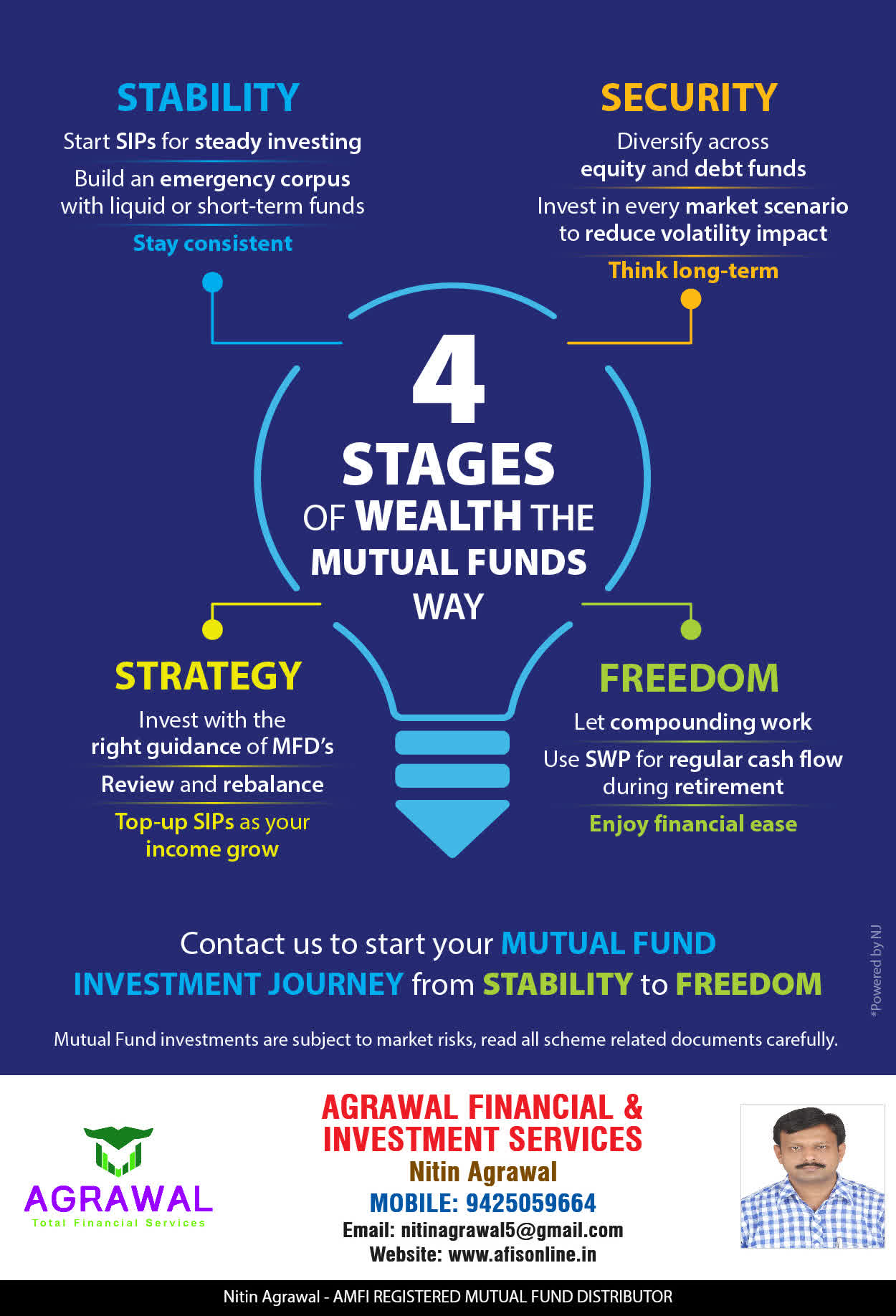 At, AGRAWAL Financial & Investment Services our mission is to provide our clients with the best solutions in wealth creation and wealth management. We are driven to provide clients with simple, unbiased and uncluttered professiaonal advice that adds value to their quality of life and results in actionable solutions.